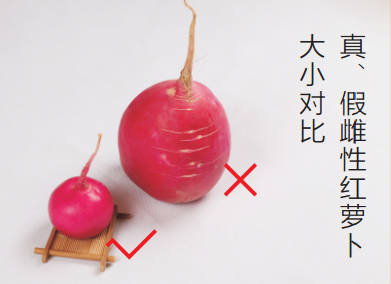 真的東北雌性紅蘿卜,每個(gè)重量只有2兩至5兩之間,而假冒的東北雌性紅蘿卜,一般都在半斤以上。目前網(wǎng)絡(luò)上出現(xiàn)大量的假冒雌性紅蘿卜均為農(nóng)貿(mào)市場(chǎng)上幾角錢一斤的普通菜蘿卜,并且根本無法保證沒有農(nóng)藥和化肥的殘留。