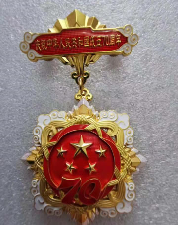 據(jù)了解,“慶祝中華人民共和國成立70周年”紀(jì)念章是新中國成立70周年系列慶?;顒拥闹匾M成部分,其分量極重,代表著至高榮譽。這也是建國以來中共中央、國務(wù)院、中央軍委首次聯(lián)合頒發(fā)的獎?wù)拢源藢π轮袊闪⑶皡⒓痈锩ぷ鞯睦贤竞托轮袊闪⒅螳@得國家級表彰獎勵的人士,為中國革命或建設(shè)發(fā)展作出重要貢獻的各領(lǐng)域人員進行的特別嘉獎。
