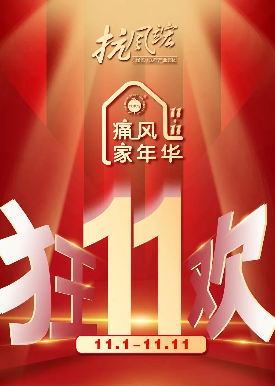 友情提示:痛風(fēng)治療要趁早,不要等到痛風(fēng)結(jié)石形成才引起重視。治療痛風(fēng)的根本并不是癥狀與疼痛的消失,而是要從根本上修復(fù)肝脾腎,調(diào)節(jié)嘌呤代謝,改善免疫能力,這樣才能真正的解決痛風(fēng)問題。今年雙十一,讓抗風(fēng)竤幫您解決痛風(fēng)難題吧!